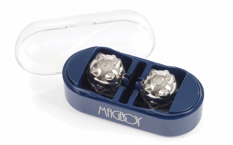 With the unique Mag Boy Nikken have taken the familiar concept of " stress balls" one stage further to create portable stress reliever with magnetic technology. Packaged in a convenient case, these sturdy magnetic balls feature specially designed nodules that refresh and stimulate your entire body. Whether you are watching television, taking a walk, or sitting at your desk, gently roll the Mag Boy between your palms or on any part of your body you experience discomfort or tension.